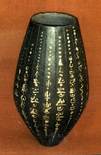 LÍNEA DE BANDAS EN PASTA NEGRA CON CUERPO DE LA OBRA TOTALMENTE CUBIERTO CON ESMALTE ARTESANAL CRAQUELE. SIMBOLOGÍA RECREADA CALADA CON HERRAMIENTAS CUNEIFORMESPLATO - CENTRO DE MESA GIGANTE