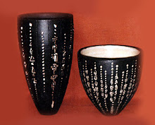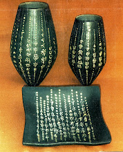 SIMBOLOGÍA RECREADA DE PUEBLOS ORIGINARIOS EN DIFERENTES TÉCNICAS DE CALADO CON HERRAMIENTAS CUNEIFORMES. ESMALTES ARTESANALES CRAQUELADOS Y PASTA NEGRA